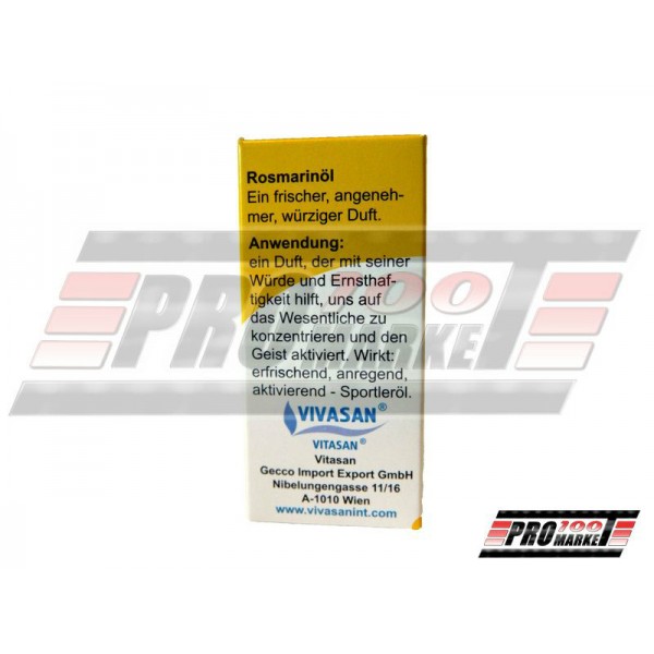Натуральна ефірна олія Розмарин Vivasan – олія, що володіє високим імуностимулюючим, знеболюючим, антиоксидантним, антисептичним, відхаркувальним, муколітичним впливом – тому часто використовується при захворюваннях верхніх дихальних шляхів (бронхіальна астма, риніт тощо). Для нервової системи виступає в ролі підсилювача – покращує пам'ять, зосередженість, знімає розумову перевтому. На серцево-судинну систему впливає шляхом поліпшення коронарного кровообігу і ослаблення ішемії міокарда.